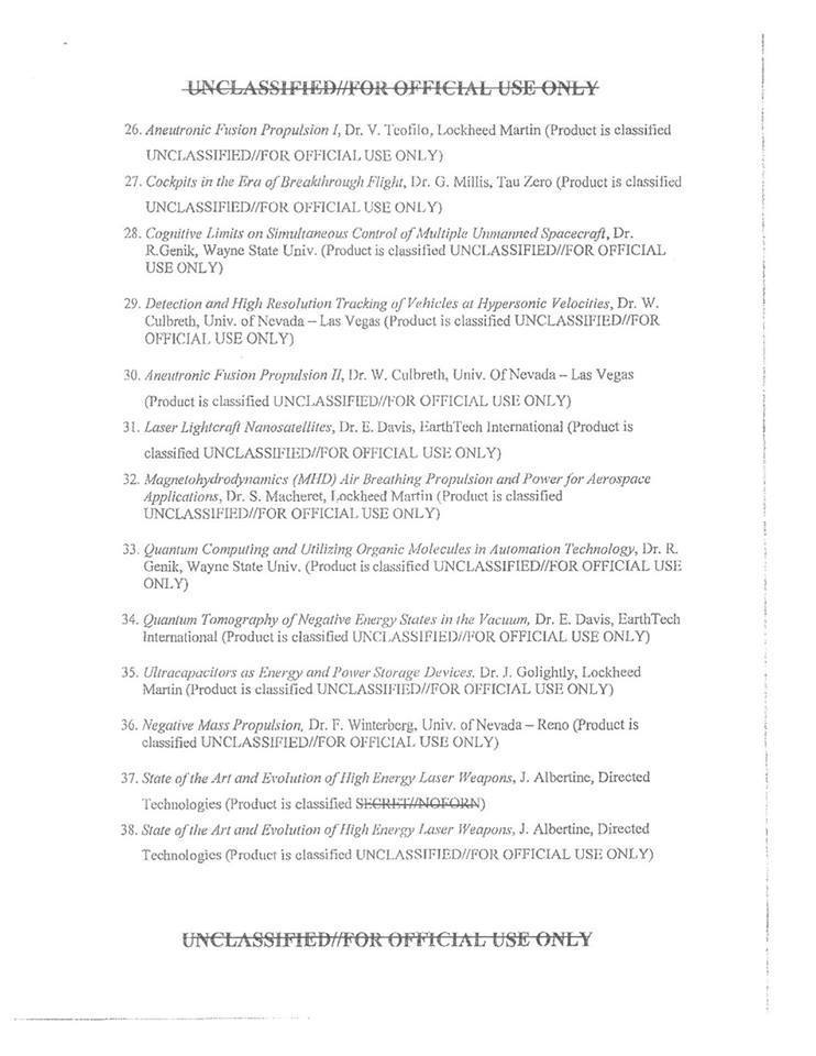 Knapp DIRD list 2 1738331539 1547705479142 38 documentos filtrados revelan que Inteligencia de Defensa de los EEUU estudió OVNIs, Skinwalker Ranch, fenómenos paranormales, unidades warp y las armas láser
