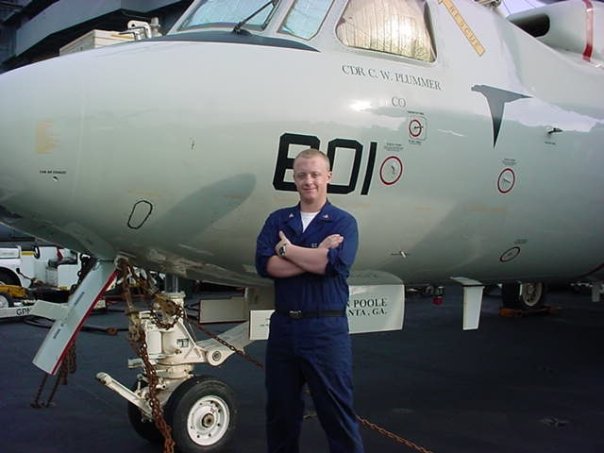 | PJ con uno de los aviones E-2C de los Wallbangers. |